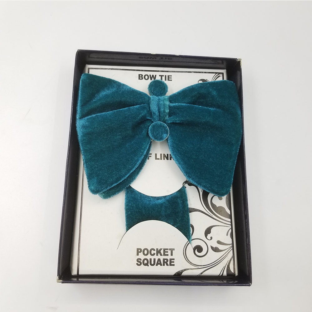 Teal green velvet bow tie With cufflinks and pocket square